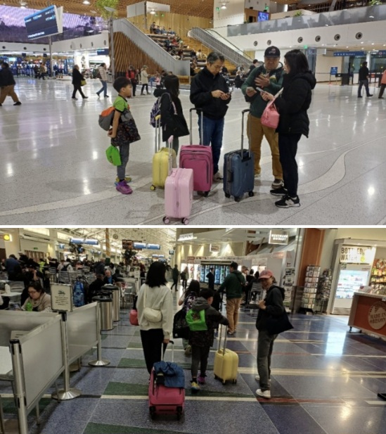 (가족 여행 간다고 개인 가방을 끌고 가는 손녀와 손자가 더 흥분했을 듯 )